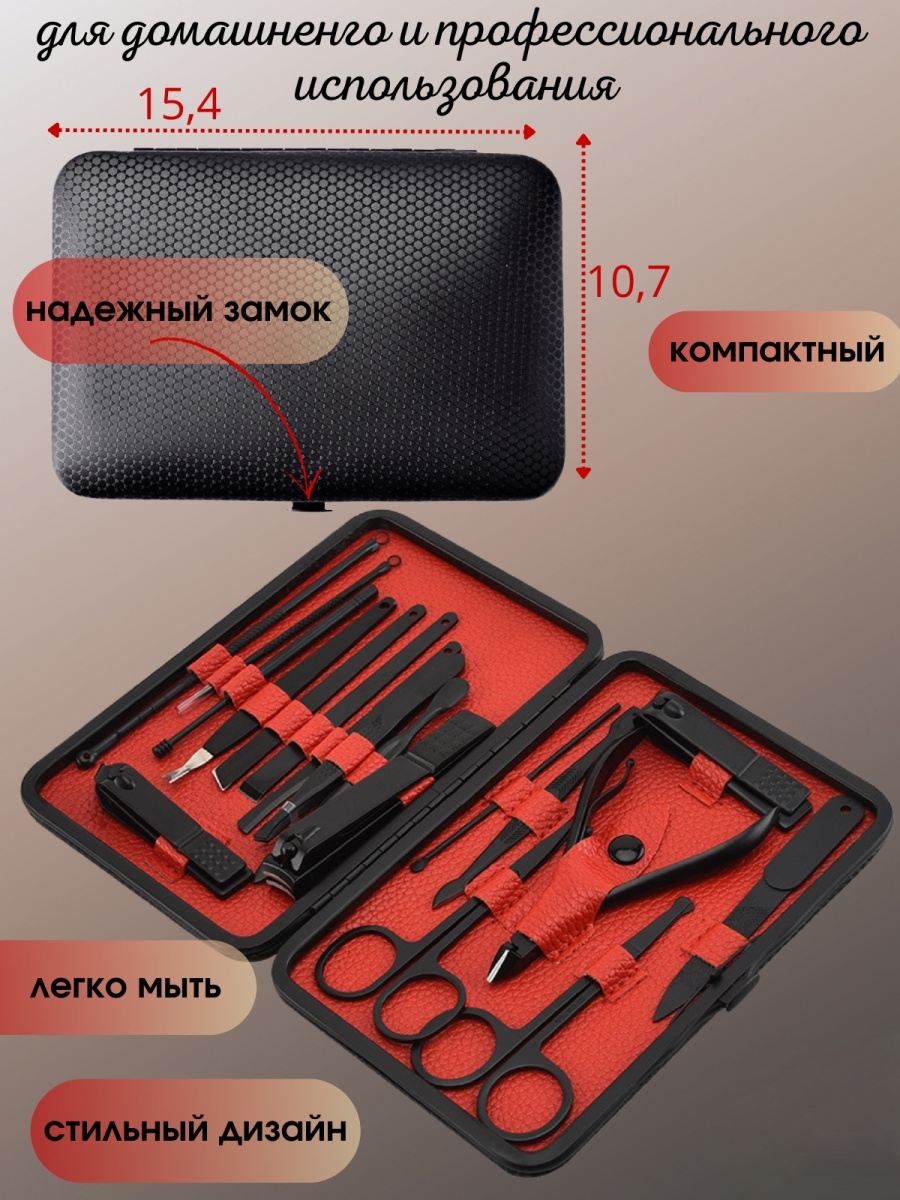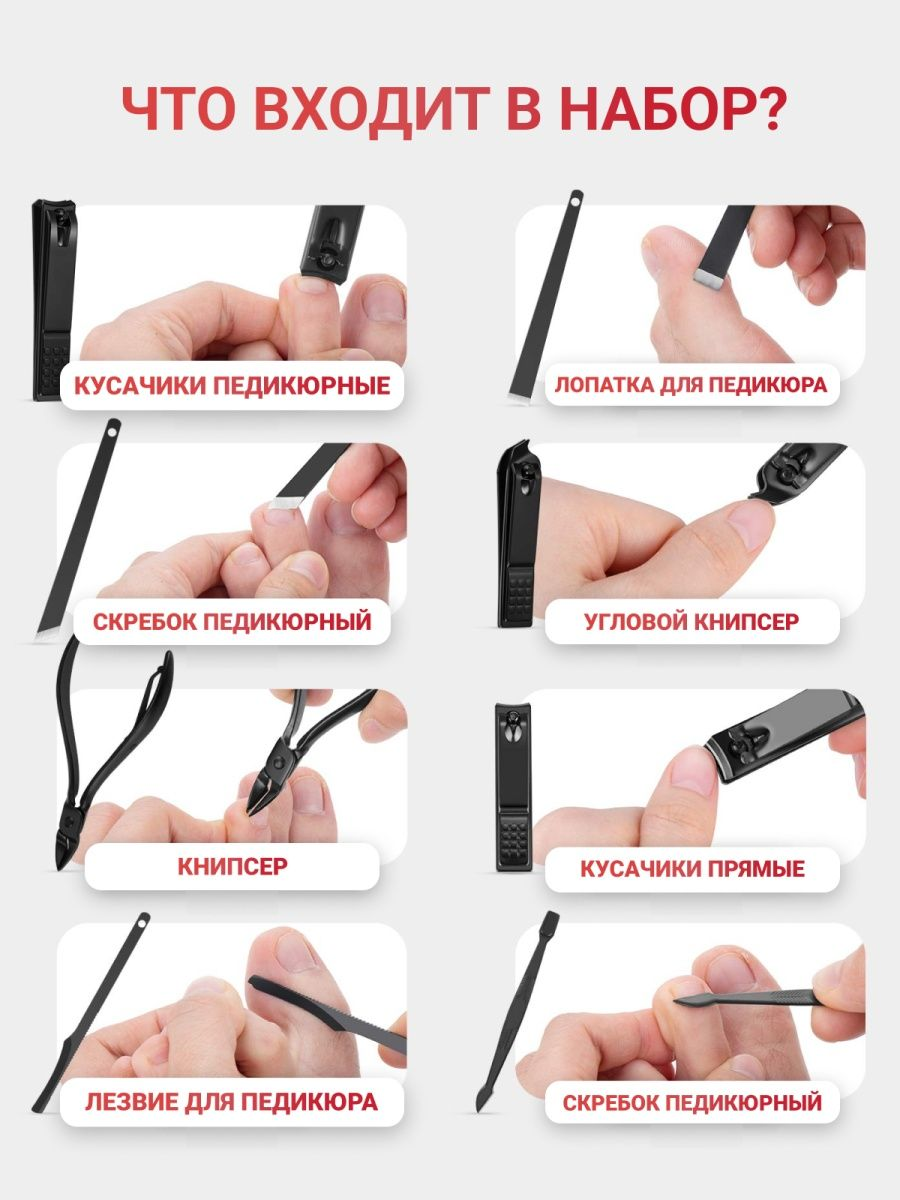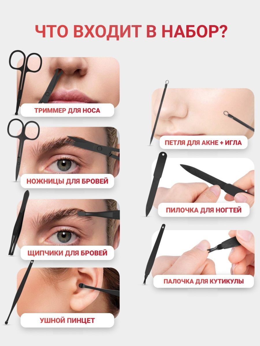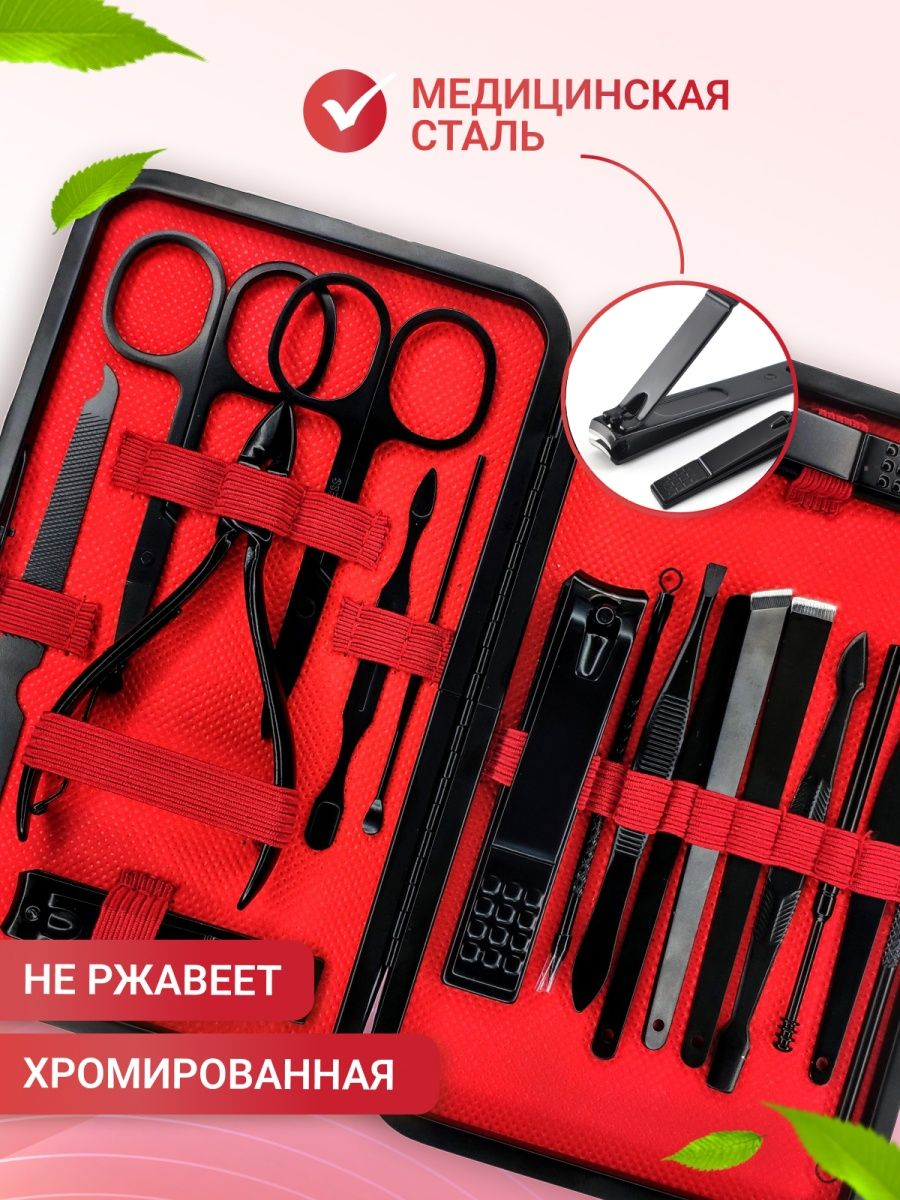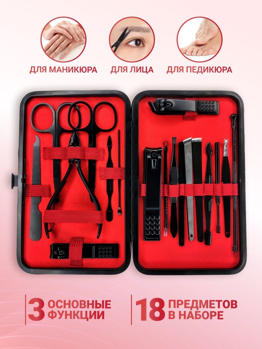 В наборі ви знайдете все необхідне для манікюру, педикюру та догляду за обличчям. Більше не потрібно окремо купувати кожен інструмент!